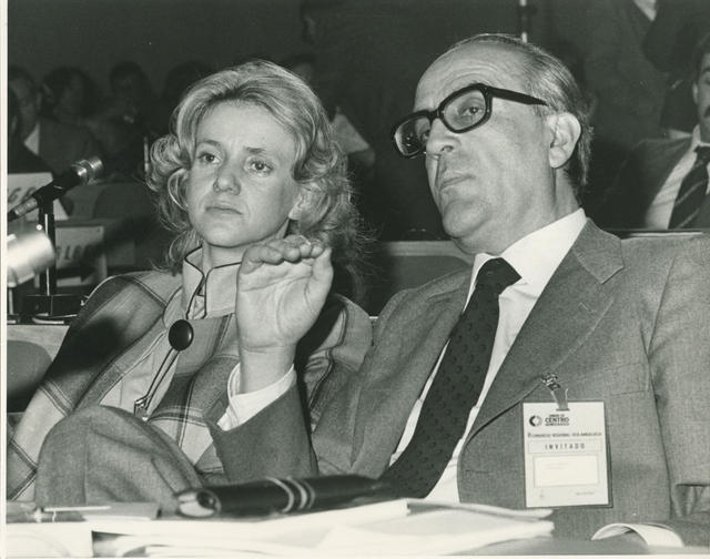 Soledad Becerril junto al Presidente del Gobierno y de UCD, Sr. Calvo Sotelo en el curso del Congreso regional de UCD de Andalucia.