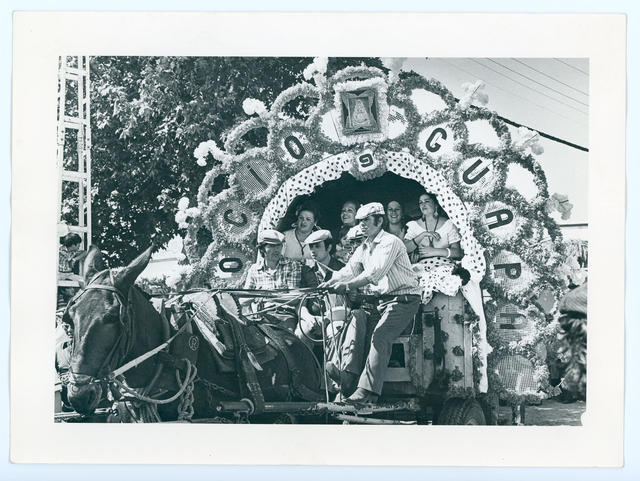 Una de las engalanadas carretas en las que se efectúa el viaje en honor a la Virgen del Rocío