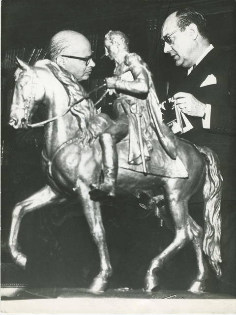 En el despacho presidencial del Palacio de San Carlos y junto a la estatua ecuestre de Simón Bolivar, el Embajador de España don José Miguel Ruiz Morales hace entrega de la Medalla de Oro de la Asociación Amigos de los Castillos al Presidente de Colombia don Carlos Lleras Restrepo por su labor en favor de la conservación del patrimonio histórico y artístico de Cartagena de Indias y otras reliquias de la época colonial.