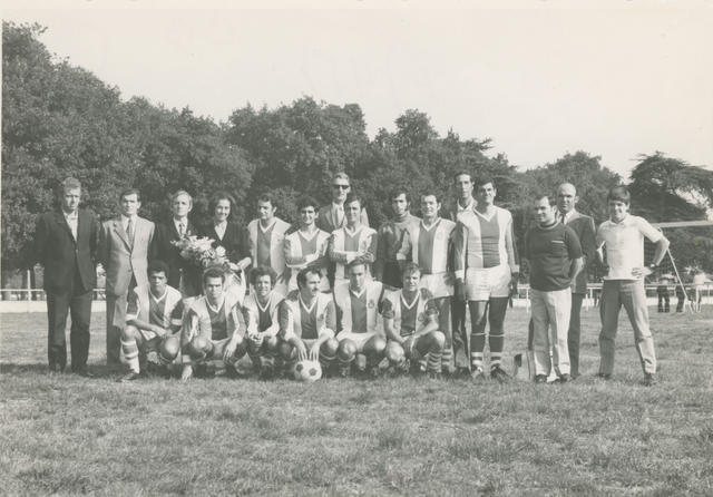 Equipo de fútbol C. D. Español, del Centro Español de Toulouse. FOtografía tomada el día de la inauguración de la temporada 1971-72. EL equipo milita en la Segunda División Amateur de la Liga de Toulouse.