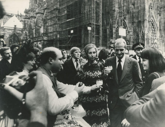 Los Reyes son invitados a un vino alsaciano tras la visita a la catedral de la ciudad