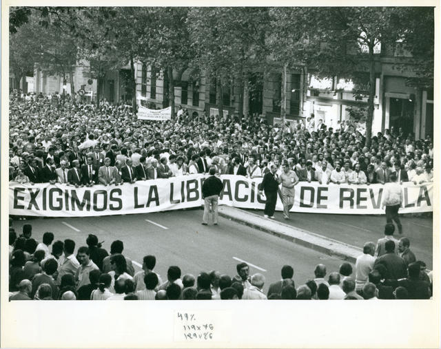 Bajo el lema "Solidaridad con Revilla", una manifestación recorre Madrid pidiendo la libertad del industrial Emiliano Revilla, secuestrado por ETA