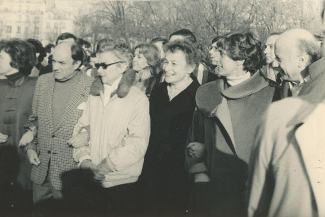Los ministros Cheysson, Bouchardeau y Georgina Dufoix, en diciembre de 1983