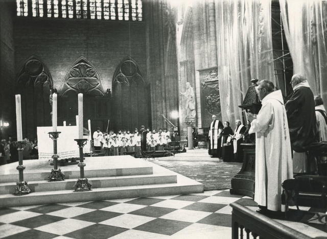 Los infanticos del Pilar en Notre Dame de París, con la asistencia de Monseñor Jean Marie Lustiger, arzobispo de París