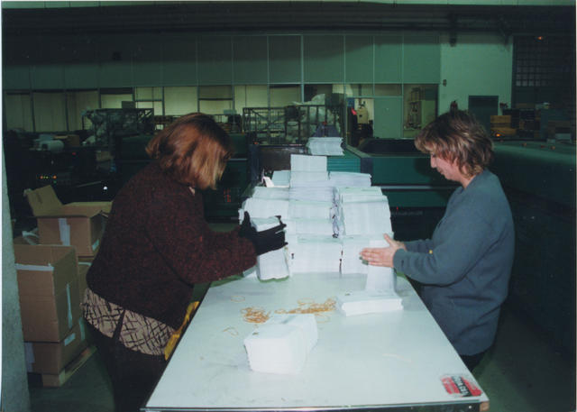 Trabajadores de Correos ensobrando. - Archivo Gráfico de Carta de España