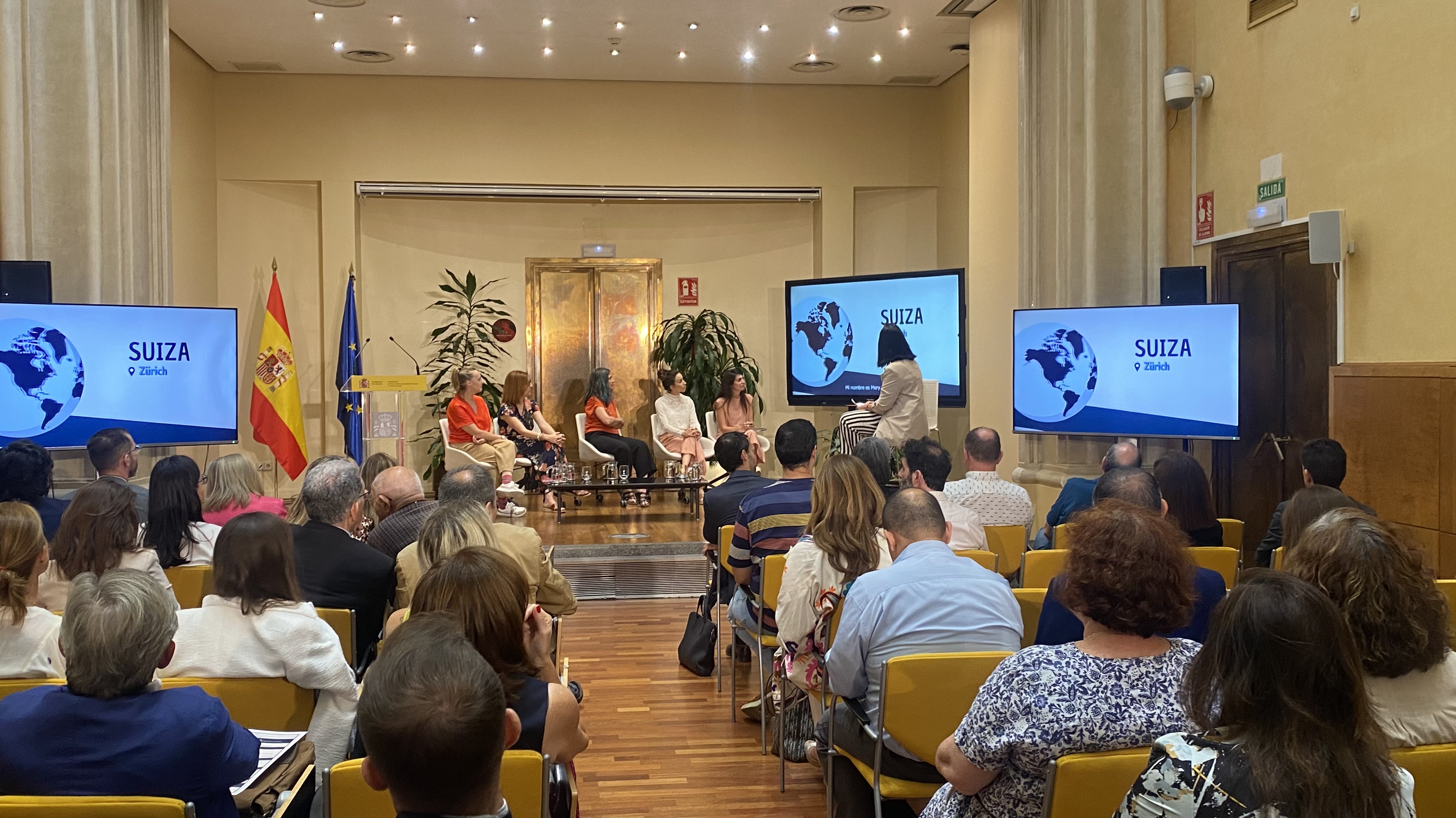 De izq a dcha: Susan Hornos, actriz; Carmen Sancho, consultora internacional; Sara Barrasa, científica; Cristina Casa, bailarina; Ainhoa Caballero, presentadora en RTVE; y Eva Martínez, moderadora.